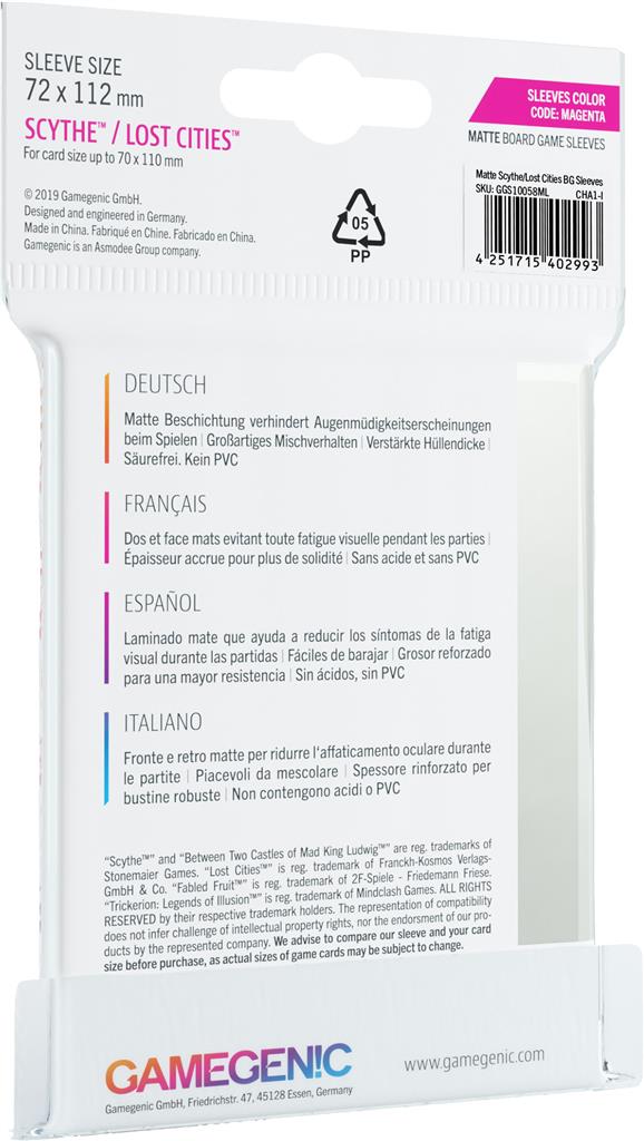Gamegenic Board Game Sleeves Matte - Scythe / Lost Cities 72 x 112mm 60ct